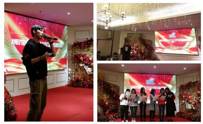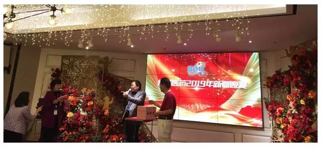 晚宴运动由公司行政和人力资源总监刘菁纯主持,,,,,首先约请公司董事长和首席运营官做新年致辞,,,,,对一年来体贴支持7790必发集团事情的相关向导和合作伙伴体现谢谢,,,,,对公司员工已往一年的起劲和贡献体现认可和谢谢,,,,,对2019年的事情提出期许和要求。。。。。。。。随后,7790必发集团高管整体上台,,,,,与在场全体员工配合碰杯,,,,,庆祝新春佳节,,,,,同时也为全体员工和家人送上新春的祝福。。。。。。。。
