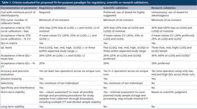 ¿ÆÑ§¼¶ÑéÖ¤£ºÔÚ¾ÙÐÐÑо¿Ç°¿ÆÑ§¼¶ÑéÖ¤µÄÀú³ÌÖУ¬£¬£¬£¬£¬£¬£¬STDÇúÏ߯À¹ÀÒÔ¼°×¼È·¶ÈºÍϸÃÜ¶ÈÆÀ¹À¿ÉÒÔÓÉÒ»Ãû»òÁ½ÃûÆÊÎöʦÔÚ2ÌìÄÚÍê³É£¬£¬£¬£¬£¬£¬£¬¿ÉÓÃÀ´ïÔÌÑо¿Ç°½×¶ÎµÄÒ»Á¬Ê±¼ä¡£¡£¡£¡£¡£ÕâÓëî¿Ïµ¼¶ÑéÖ¤ËùÐèÒªµÄ¸üÎȽ¡ÆÀ¹ÀÏà·´£¬£¬£¬£¬£¬£¬£¬¿ÉÊÇÊÇ¿ÉÒÔ½ÓÊܵ쬣¬£¬£¬£¬£¬£¬ÓÉÓÚËü·´Ó¦Á˸ÃÒªÁìÖ»ÊÇ¶ÌÆÚµØÓ¦ÓÃÓÚÑùÌìÖ°Îö¡£¡£¡£¡£¡£¿£¿£¿£¿£¿£¿£¿ÆÑ§¼¶ÑéÖ¤µÄÑо¿Ç°ÑéÖ¤ºÍÑо¿ÖÐÑùÌìÖ°ÎöµÄÄ¿µÄ½ÓÊܱê×¼Óëî¿Ïµ¼¶ÑéÖ¤µÄÄ¿µÄ½ÓÊܱê×¼Ò»Ö£¬£¬£¬£¬£¬£¬£¬µ«»ùÓÚÊý¾ÝµÄÔ¤ÆÚÓÃ;µÈ¿ÆÑ§Ôµ¹ÊÔÓÉ£¬£¬£¬£¬£¬£¬£¬¿ÉÄÜ»áÓ¦Óøü¿í·ºµÄ½ÓÊܱê×¼£¨ÀýÈç>20%Îó²îºÍ %CV >20%£©¡£¡£¡£¡£¡£ÔÚºóÐøµÄ"ÌÖÂÛ"Õ½ÚÖУ¬£¬£¬£¬£¬£¬£¬ËùÓеĽÓÊܱê×¼¶¼ÌåÏÖÄ¿µÄ/Ô¤ÆÚ½ÓÊܱê×¼¡£¡£¡£¡£¡£