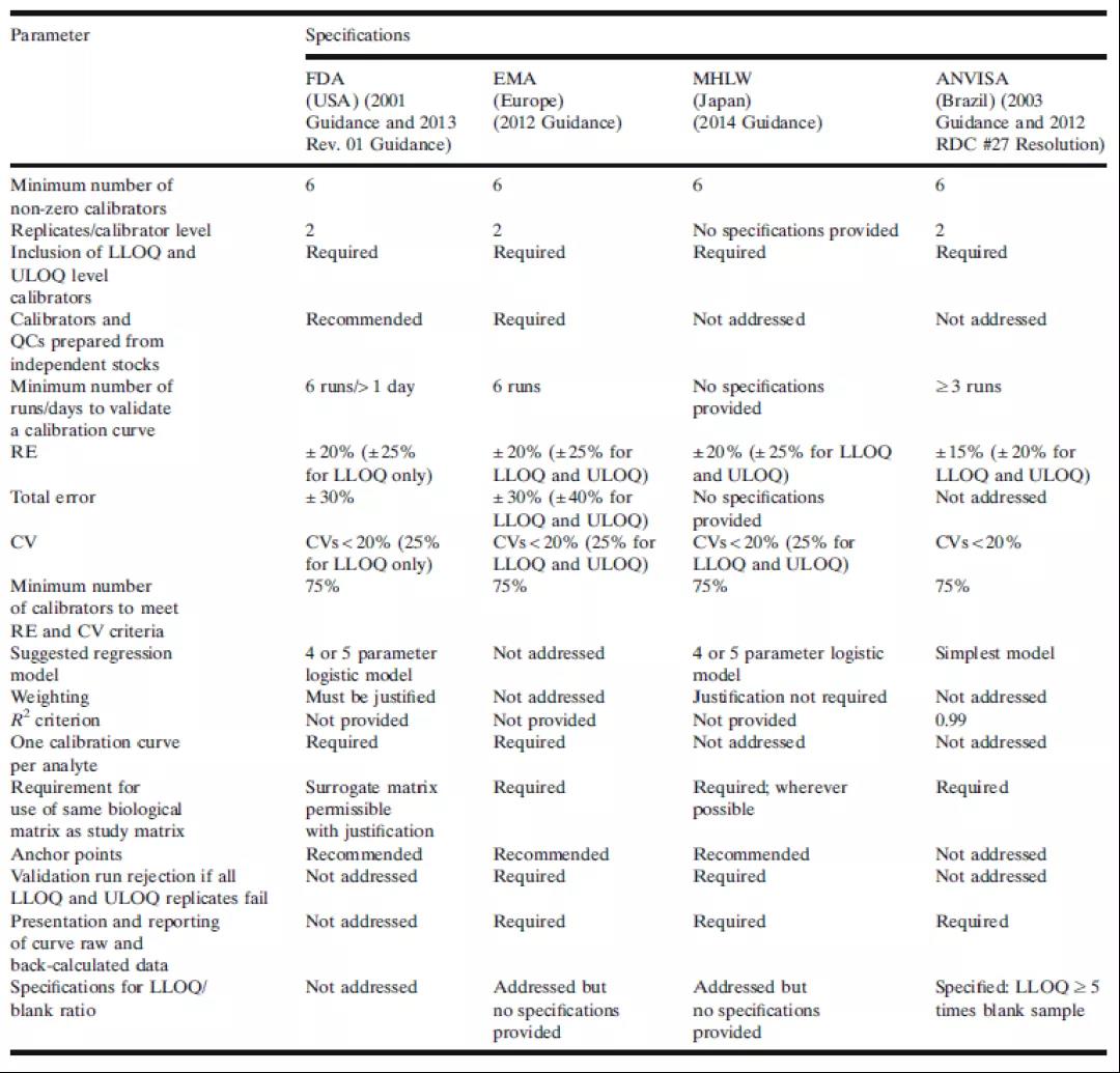 Ä¿½ñ£¬£¬£¬£¬£¬Ò»Ð©ÉúÎïÆÊÎöÖ¸ÄÏ»ò¹æÔòÎļþµÄÉúÎïÆÊÎö²¿·ÖÒѾ¶ÔУ׼±ê×¼ÇúÏßµÄ×îµÍÒªÇó¾ÙÐÐÁËÈ·¶¨¡£¡£¡£¡£¡£¡£ÕâЩָµ¼ÐÔÎļþ¶ÔLBAÇúÏßµÄÐèÇóºÍÐÔÄÜÔ¤ÆÚͨ³£ÊÇÏ໥һÖµġ£¡£¡£¡£¡£¡£±í1×ܽáÁËÀ´×ÔÃÀ¹úʳÎïºÍÒ©Îï¹ÜÀí¾Ö(FDA)¡¢Å·ÖÞÒ©Æ·¹ÜÀí¾Ö(EMA)¡¢ÈÕ±¾ÎÀÉú¡¢ÀͶ¯ºÍ¸£Àû²¿(MHLW)ºÍ°ÍÎ÷ÎÀÉúî¿Ïµ»ú¹¹(ANVISA)¶ÔУ׼ÇúÏßµÄÒªÇ󡣡£¡£¡£¡£¡£FDAºÍEMAÖ¸ÄÏÊǾø´ó´ó¶¼ÉúÎïÆÊÎöʵÑéÊÒ×ñ´ÓµÄÖ÷ÒªÖ¸ÄÏ¡£¡£¡£¡£¡£¡£¸÷¸öÖÆÒ©³§ÉÌӦƾ֤¸÷×ÔÍýÏëËùÌá½»µÄÐÂÒ©ÉóºËî¿Ïµ»ú¹¹À´¾öÒé×ÔÉíÐèÒª×ñ´ÓµÄÖ¸ÄϹæÔò¡£¡£¡£¡£¡£¡£