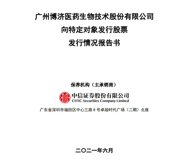 今日(6月23日)晚,,,,,,,7790必发集团医药对外宣布《向特定工具刊行股票刊行情形报告书》(下称《报告书》),,,,,,,确定公司向特定工具刊行股票事项刊行完毕。。。。。广州高新区投资集团获配股数最多,,,,,,,认购金额近9000万元。。。。。